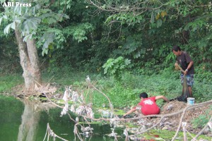 Di hari-hari biasanya, Bang Toyib mencari ikan sendirian. Namun kali ini ditemani Anas, keponakannya yang sedang libur sekolah. Anas bertugas membersihkan ikan-ikan dari lumpur, dan memilah ikan yang hidup dan mati. “Yang hidup dimasukin ke drum dengan air bersih, kalo mati dimasukin plastik,” tutur Anas.