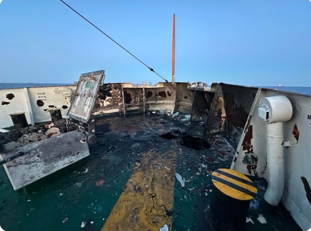 “Kapal tersebut terkena dua serangan drone bersenjata yang menghantam bagian depan kapal dan menyebabkan kebocoran besar pada lambung,” kata Yasemin Acar, juru bicara media koalisi dalam keterangan resmi.