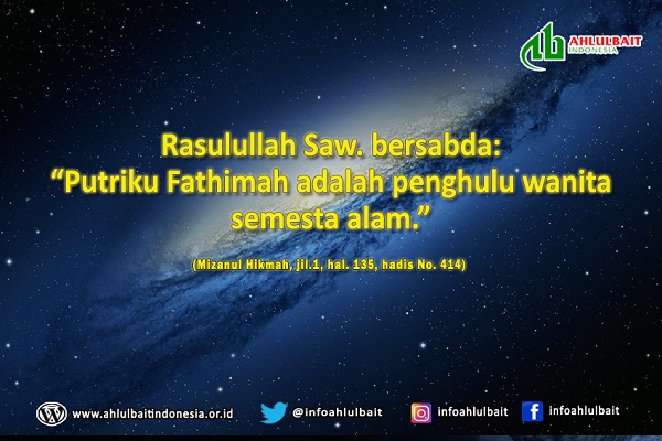 Rasulullah Saw. Bersabda: “Adapun putriku Fathimah, dia adalah penghulu wanita sejagad, baik dari kalangan orang-orang yang terdahulu maupun orang-orang yang kemudian.”