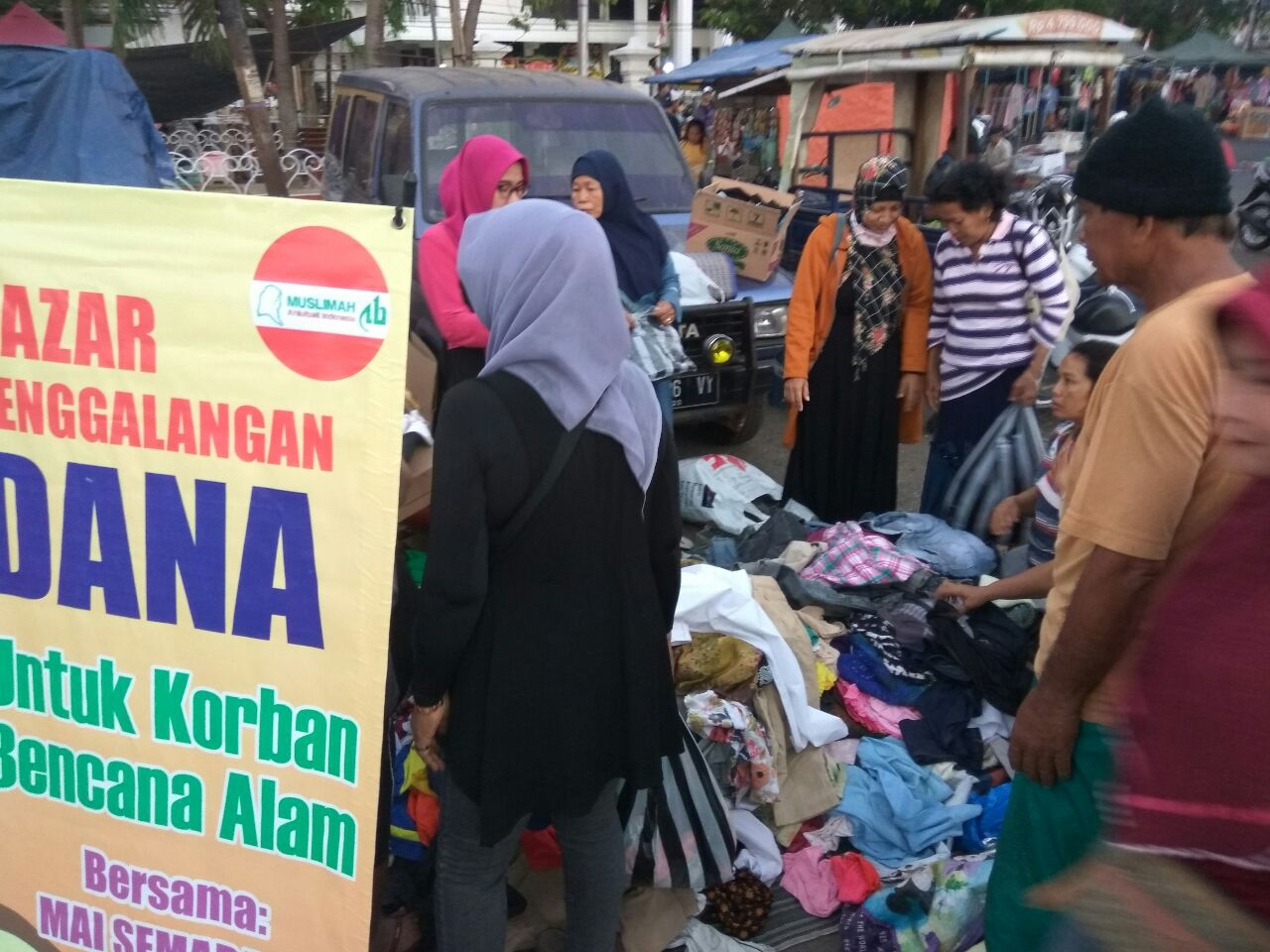 Semarang (Minggu, 19/8/18) – Muslimah Ahlulbait Indonesia (MAI) Pimpinan Cabang Kota Semarang mengadakan kegiatan bazar penggalangan dana untuk korban gempa Lombok, NTB. Tepat pada hari Minggu kemarin, penggalangan dana dilakukan di kawasan Pasar Tiban, daerah Stadion Diponegoro dari pukul 06.00-10.00 pagi. Meski pasar yang hanya diadakan sekali seminggu tersebut baru dimulai pukul 06 pagi, namun panitia pelaksana sudah hadir sekitar pukul 4.30 subuh untuk menyiapkan lapak penjualan baju bekas namun layak pakai untuk dijual ke pengunjung yang datang.