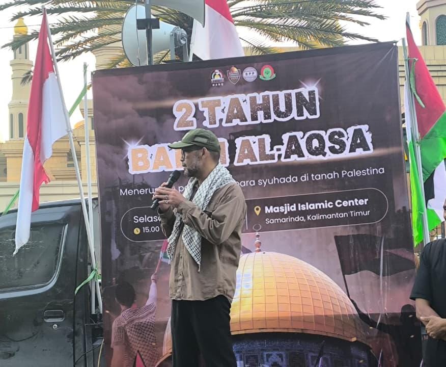 Salah satu orator utama, Ustadz Ahmad Syahab, Ketua Yayasan Al-Qaim Samarinda, menegaskan penolakannya terhadap konsep Two-State Solution yang kerap digaungkan oleh sejumlah pihak internasional. Menurutnya, konsep tersebut bukan jalan damai, melainkan kompromi terhadap penjajahan.
