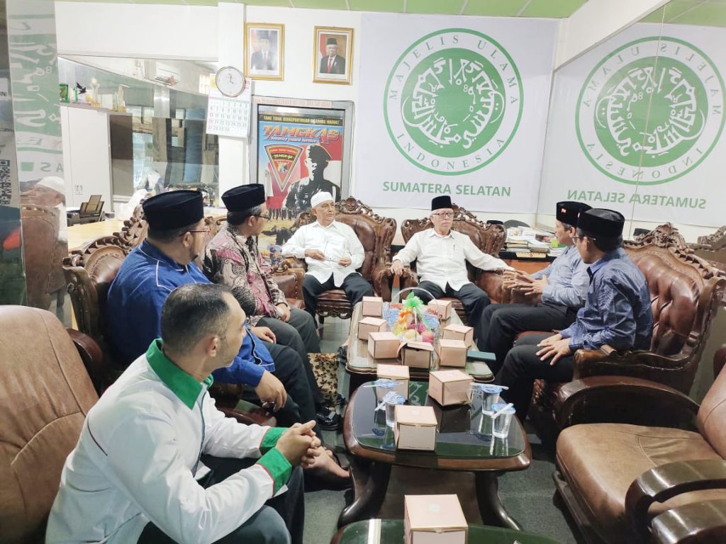Delegasi Ormas Islam Ahlulbait Indonesia (ABI) yang dipimpin ketua Umum Habib Zahir Yahya, bersama Wakil Ketua Umum Ust. Ahmad Hidayat, Sekjen Habib Ali Ridho, Wakil Sekjen Bpk. Arif Ambari, Ketua Dewan Pengurus Wilayah (DPW) ABI Sumatera Selatan Sayyid Ahmad Muhajir, dan Ketua Pandu Ahlulbait Sumatera Selatan Sayyid Ahmad Fikri diterima Ketua Majelis Ulama (MUI) Provinsi Sumatera Selatan Prof. Dr. K.H. Aflatun Muchtar bersama Sekretaris Habib Farid Alaydrus dan Komisi Fatwa Ust. Nur Kholis di Kantor MUI, Sabtu (3/12).