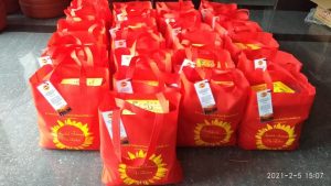 Dalam kegiatan itu dilakukan pembagian sejumlah paket sembako yang terdiri dari beras, telur, minyak, dan kecap. Uniknya, semua daerah melakukan hal yang sama dalam waktu bersamaan, atau di hari dan jam yang sama.