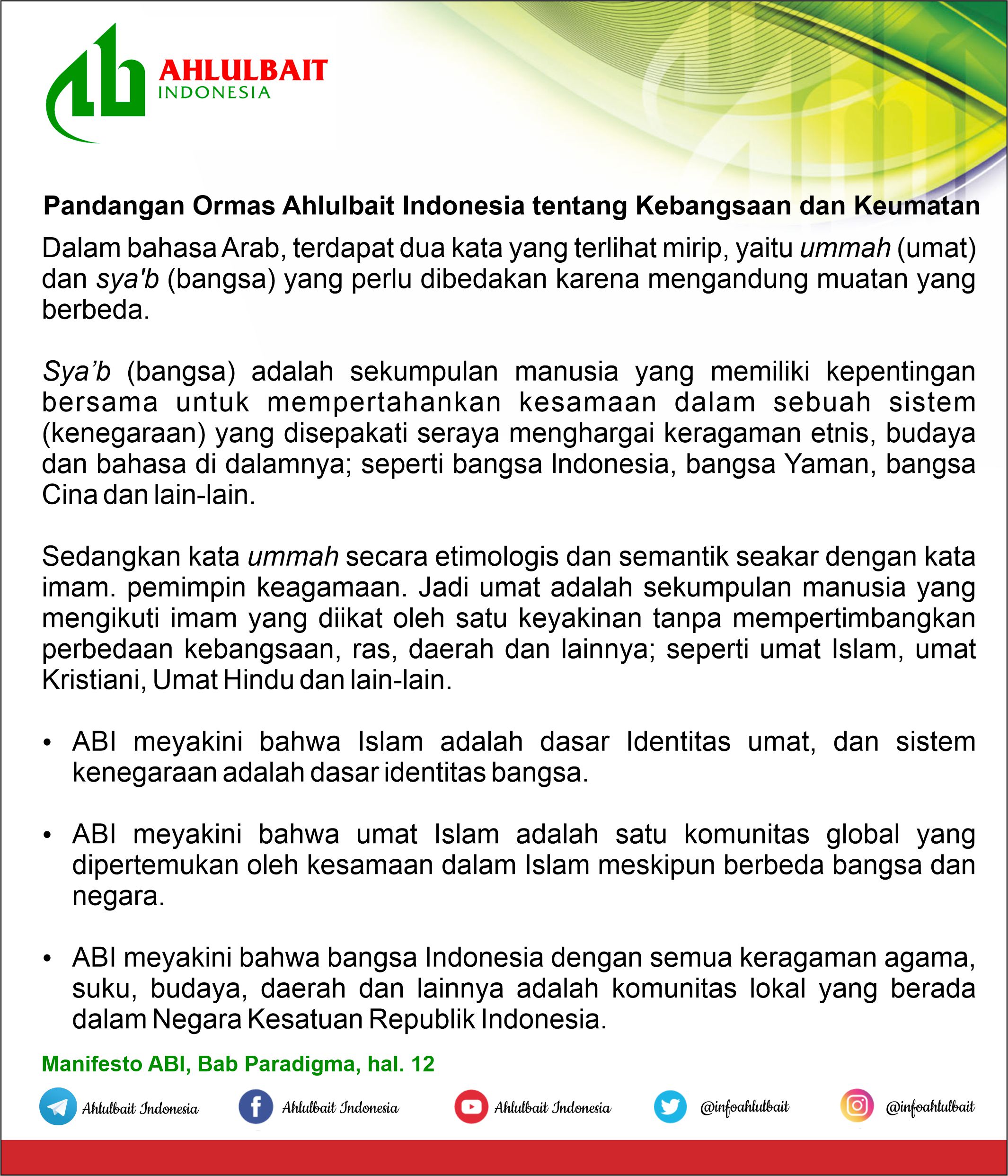 Pandangan Ormas Ahlulbait Indonesia tentang Kebangsaan dan Keumatan