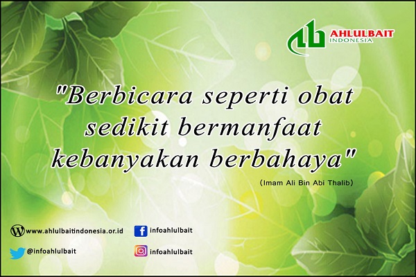 Berita Pesan Imam Ali as tentang Berbicara Published 8 tahun ago on 8 September, 2017 By Ahlulbait Indonesia Imam Ali as berkata: “Berbicara seperti obat sedikit bermanfaat kebanyakan berbahaya” Related Topics:AliASBerbicaraimamPesan Up Next Pada Usia Berapakah Sebaiknya Orang Menikah? Don't Miss Pesan Imam Ali as untuk Berbuat Baik Continue Reading You may like Imam Hasan Mujtaba: Kelembutan Seorang Imam di Tengah Kekerasan Zaman Zuhud dan Kesederhanaan Hidup Imam Ali Ridha a.s. Keteguhan Imam Ja’far as-Shadiq: Inspirasi Abadi Perlawanan dari Madinah hingga Gaza Ajaran-Ajaran Imam Ja‘far Shadiq a.s. Serangan Mahal, Efek Murahan: Kegagalan Amerika Menaklukkan ‘Kaum Sarungan’ Imam Ali Selalu Menunggu Kesyahidannya Click to comment Leave a Reply Batalkan balasanAlamat email Anda tidak akan dipublikasikan. Ruas yang wajib ditandai *Komentar * Nama * Email * Situs Web
