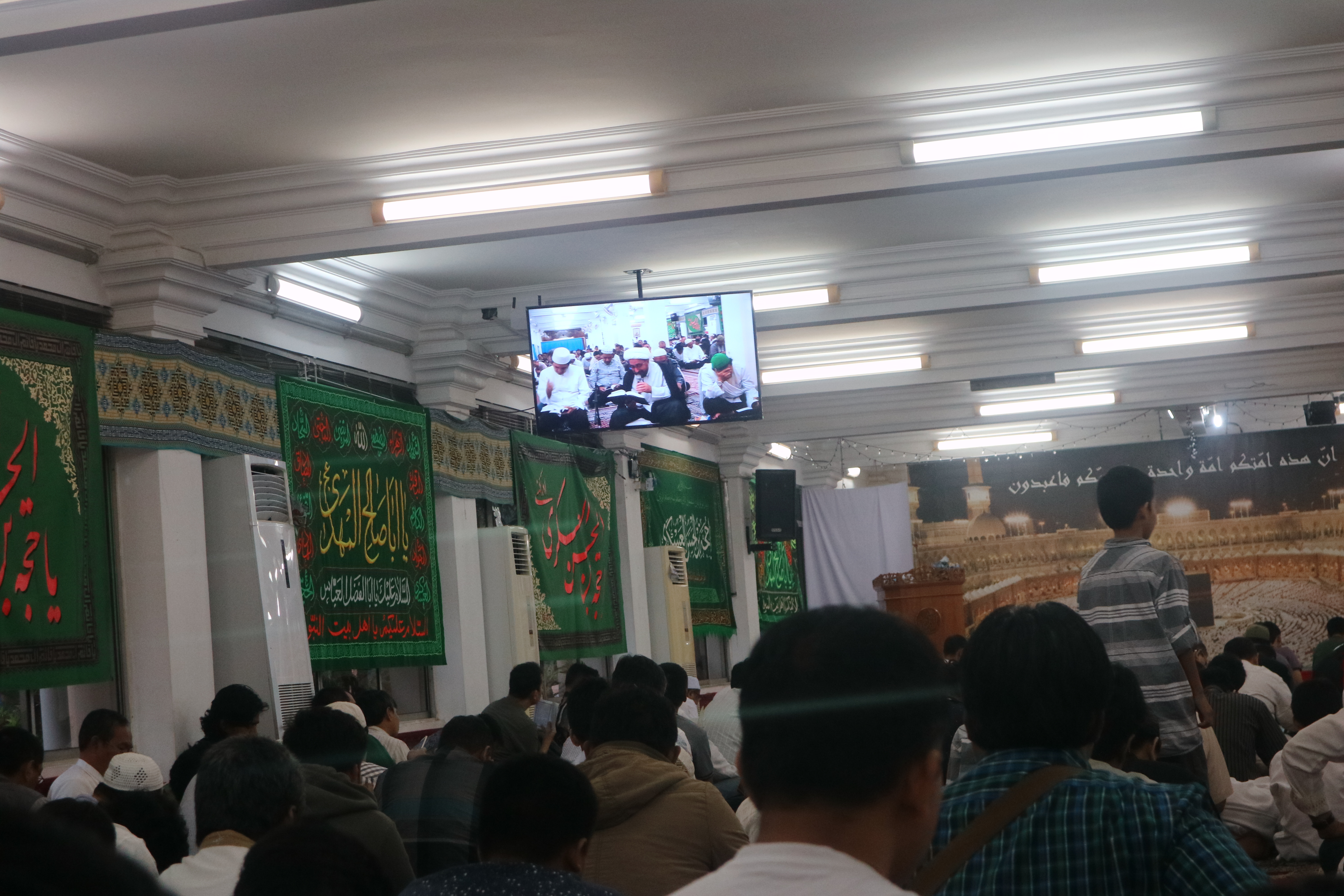 Pagi ini komunitas Muslim Syiah shalat id berjamaah di Islamic Cultural Center, Pejaten, Jakarta Selatan. Setiap ada acara besar seperti peringatan wiladah, haul maupun hari besar Islam lainnya tempat ini selalu ramai dikunjungi pengikut Ahlulbait. Ratusan pengunjung yang datang untuk melakukan ibadah terlihat khusuk, jamaah yang datang beragam, pria maupun wanita dari berbagai kalangan usia.