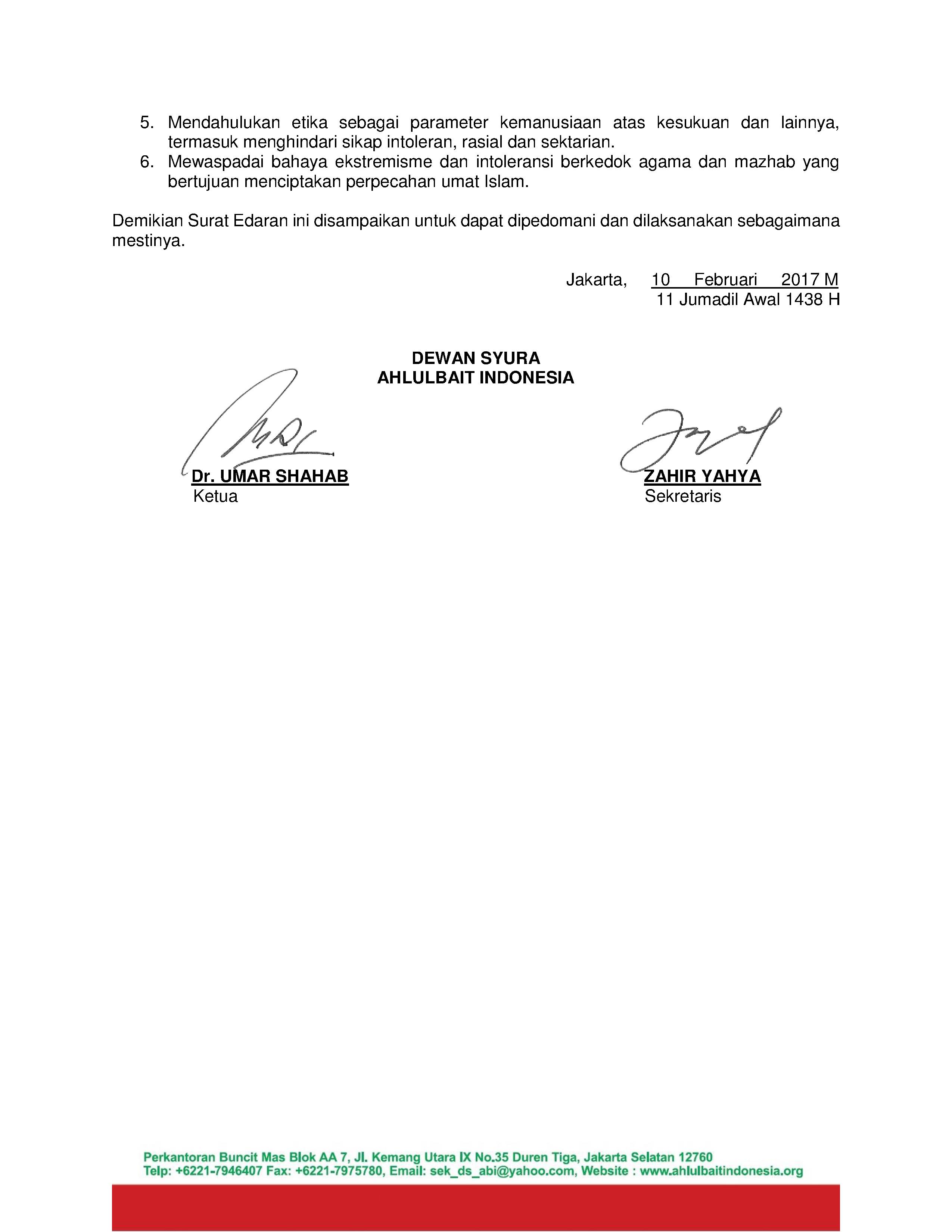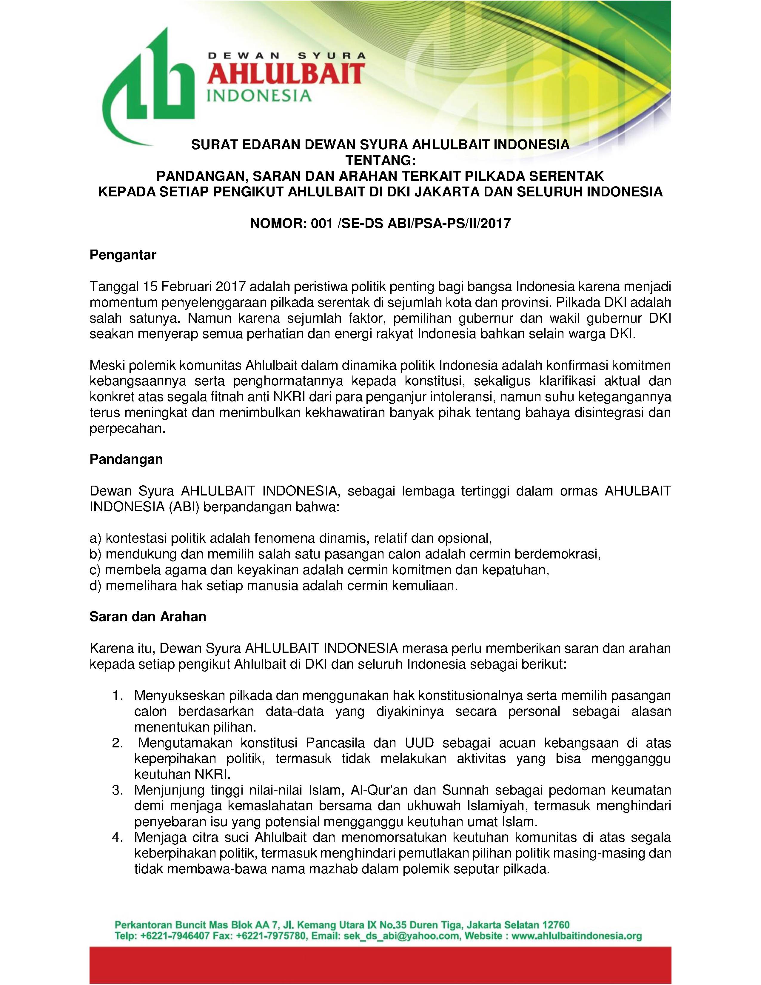 Surat Edaran Dewan Syura Ahlulbait Indonesia terkait Pilkada Serentak