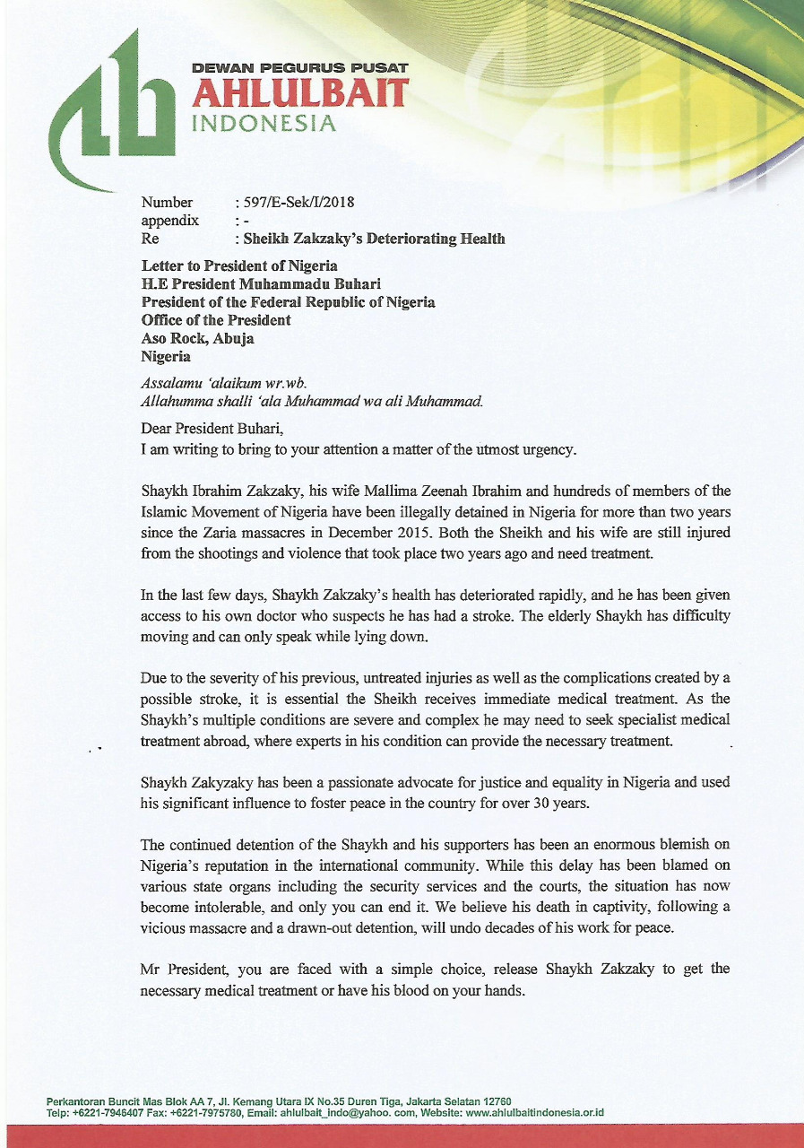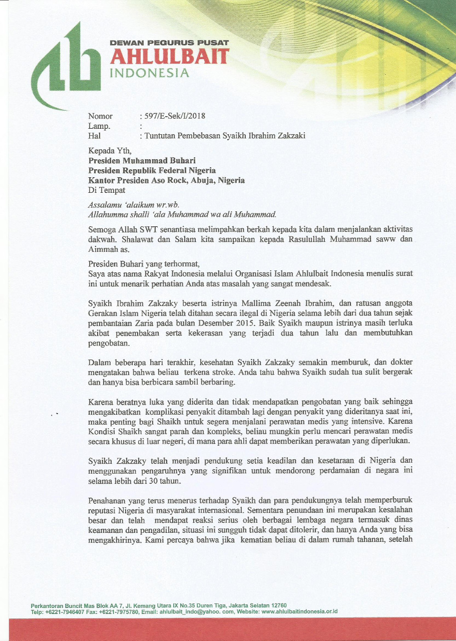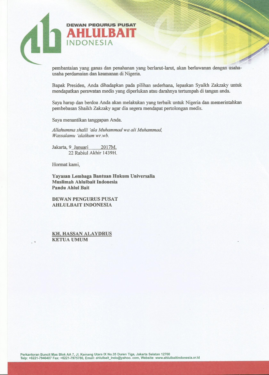 Berita Surat Tuntutan Pembebasan Syaikh Ibrahim Zakzaki Published 8 tahun ago on 11 Januari, 2018 By Ahlulbait Indonesia Related Topics:ibrahimpembebasansuratSyaikhtuntutanZakzaki Up Next Perang Arab Saudi dan Kerusakan Infrastruktur Pendidikan Yaman Don't Miss Pentingnya Memilih Nama yang Baik untuk Anak Continue Reading You may like Syaikh Naim Qassem: Zionis Akan Menerima Kekalahan! Syaikh Naim Qassem: Kemenangan Tak Terbendung Ibadah: Naluri Sempurna dan Indah Hizbullah Siap Hadapi Zionis, Sekjen Baru Segera Dipilih Mencapai Iman dengan Keteguhan Imam Husain Rendah Hati Click to comment Leave a Reply Batalkan balasanAlamat email Anda tidak akan dipublikasikan. Ruas yang wajib ditandai *Komentar * Nama * Email * Situs Web