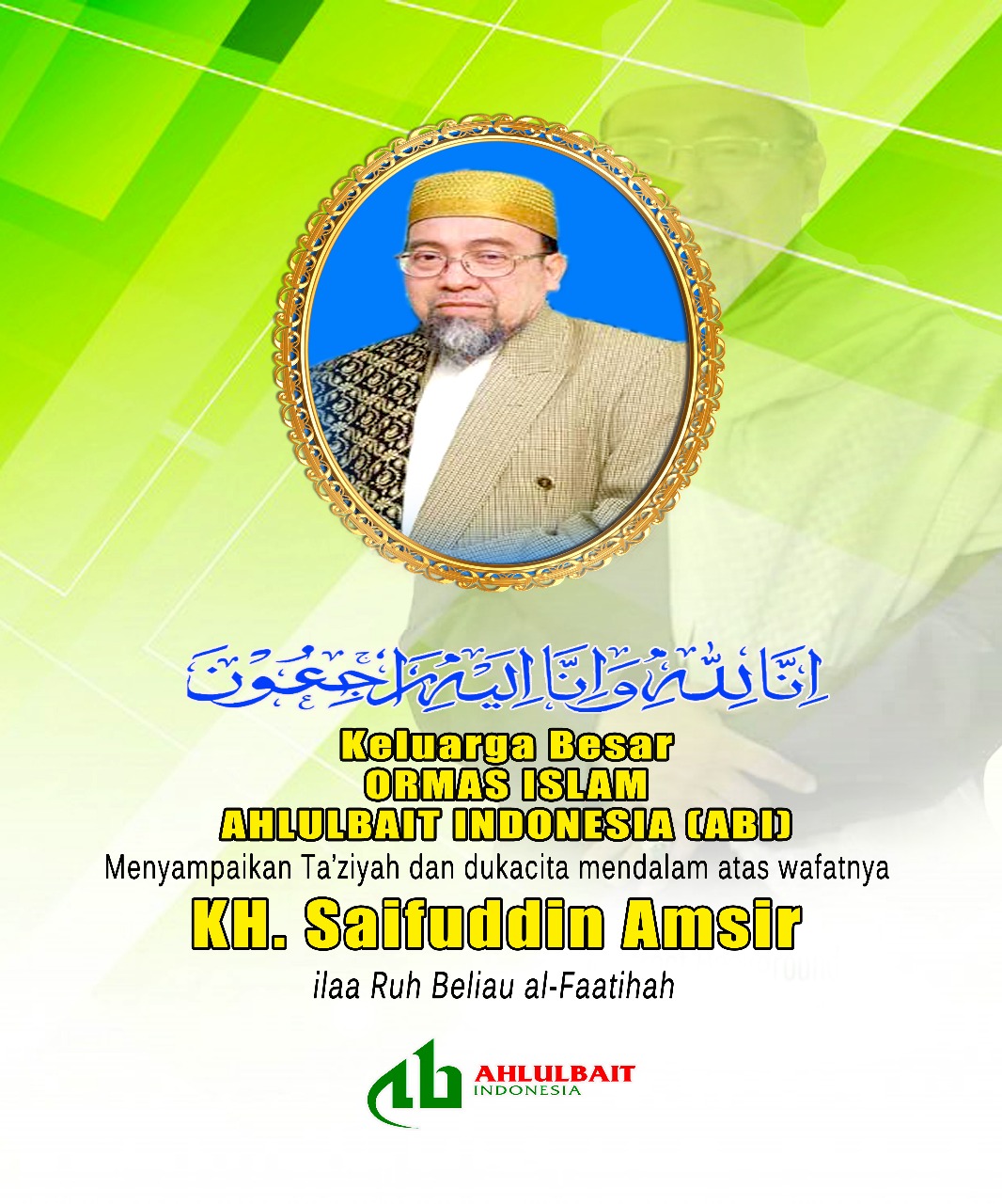 Keluarga besar Ormas Islam Ahlulbai Indonesia mengucapkan Turut Berduka Cita atas wafatnya KH. Saifuddin Amsir. Semoga Allah menerima amal-amalnya, menghapus dosa dan kesalahannya, membangkitkannya bersama para Nabi, orang-orang saleh dan auliya’, serta memperoleh syafaat Rasulullah dan Ahlulbaitnya.
