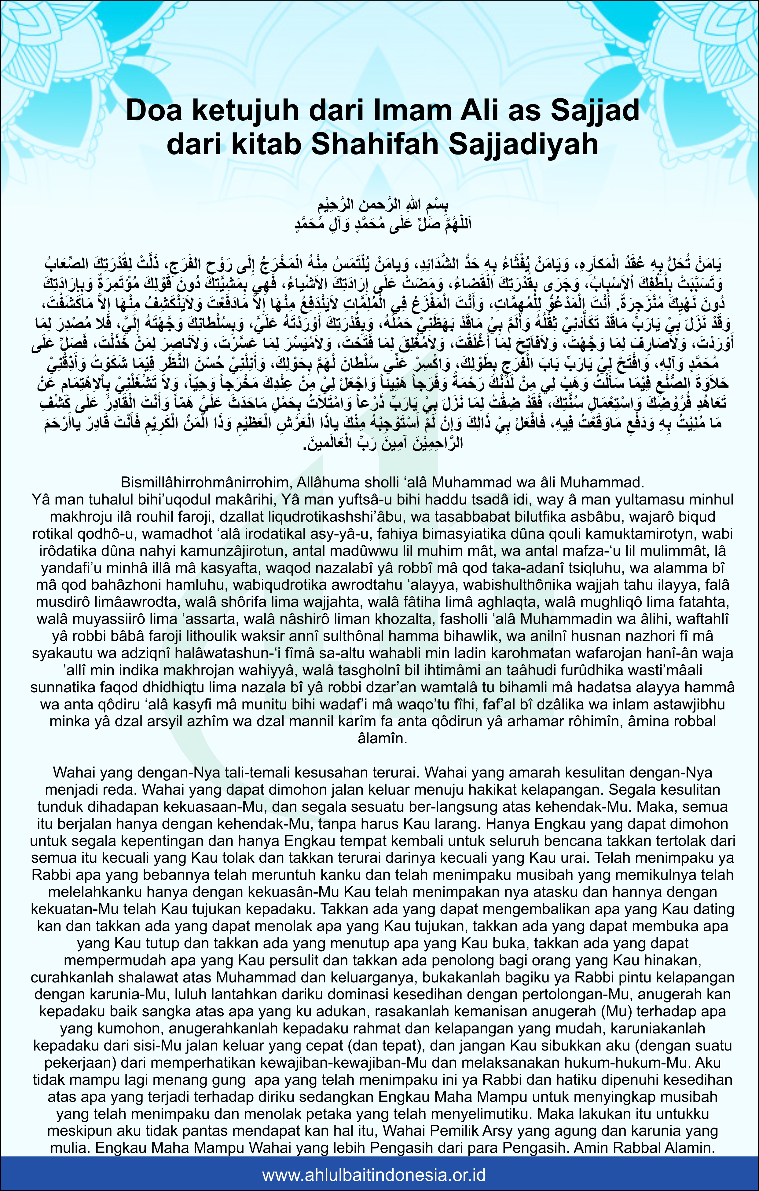 Ini wasiat saya jika memang ingin anjuran yang lebih khusus lagi, saya wasiatkan untuk membaca doa ke-7 dari kitab Shahifah Sajjadiyah yang ada di Mafatih Al-Jinan.