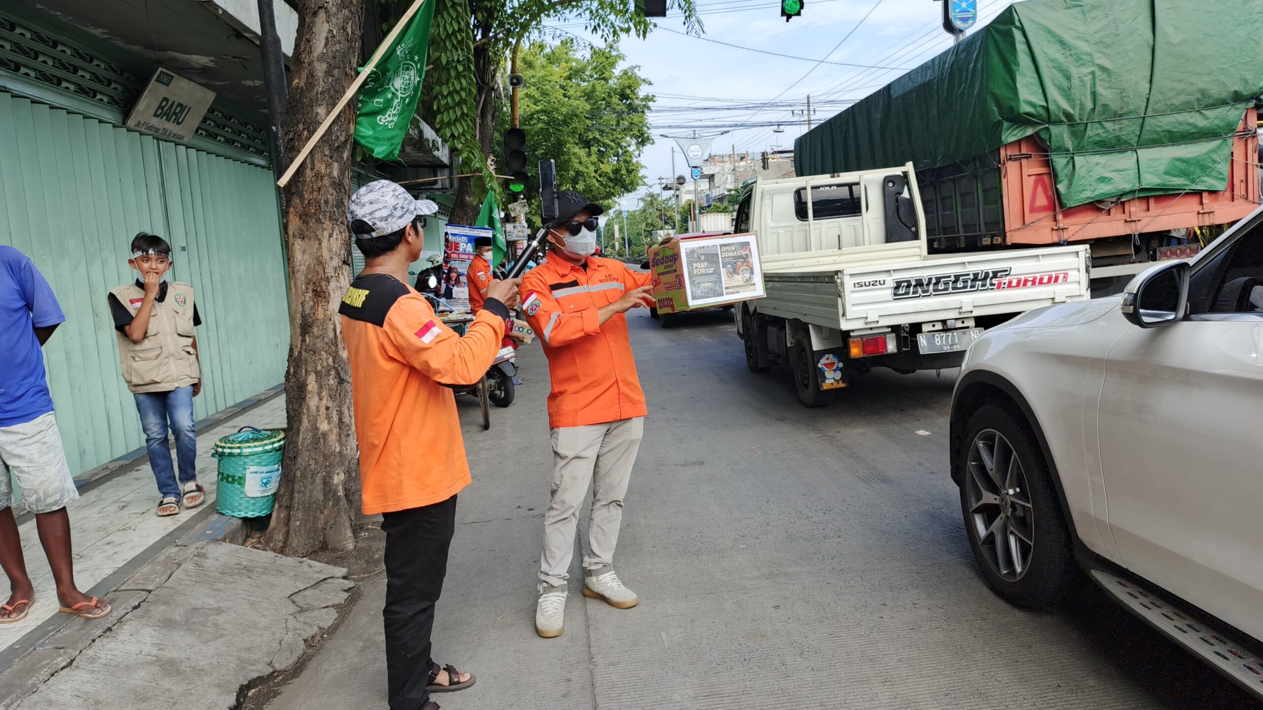 Para relawan turun langsung ke jalan untuk mengajak pengguna jalan berpartisipasi, menjadikan ruang publik sebagai medium solidaritas dan kepedulian terhadap masyarakat yang tengah menghadapi bencana.