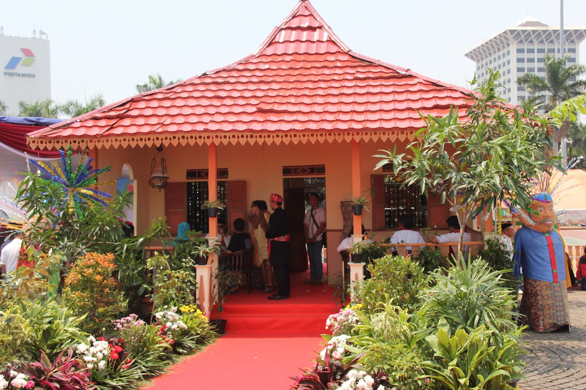 Ajang silaturahmi warga Betawi se-Jakarta digelar di lapangan Monas, Sabtu (13/9) dan Minggu (14/9) dalam bentuk acara Lebaran Betawi yang menampilkan sejumlah rumah adat dan tradisi khas Betawi.