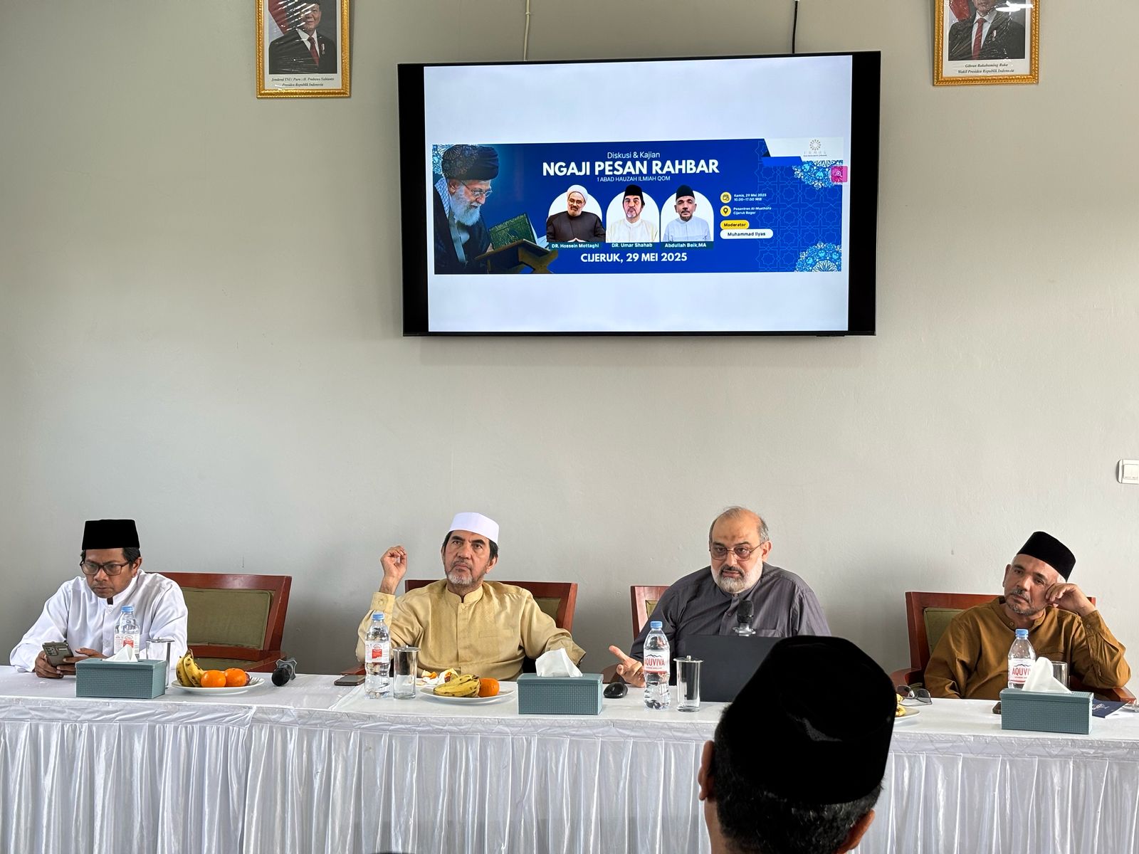 Ahlulbait Indonesia – Ikatan Alumni Jamiah Al-Musthafa (IKMAL) menggelar kajian khusus membedah pesan Pemimpin Revolusi Islam Iran, Ayatullah Sayyid Ali Khamenei dengan tema “Ngaji Pesan Rahbar”, dalam rangka memperingati Satu Abad Hauzah Ilmiah Qom. Acara berlangsung pada Kamis, 29 Mei 2025, di Pondok Pesantren Al-Quran Al-Musthafa, Cijeruk, Bogor, Jawa Barat.
