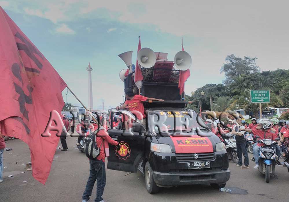 Hari Perempuan Internasional diperingati oleh para buruh Jabodetabek dengan melakukan aksi damai menyuarakan hak-hak buruh perempuan. Bertempat di depan gedung Indosat Jl. Merdeka Barat, Selasa (8/3) dua ribuan buruh bersuara menuntut penghapusan diskriminasi buruh perempuan.
