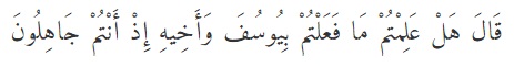 Yusuf berkata, “Apakah kamu mengetahui (kejelekan) apa yang telah kamu lakukan terhadap Yusuf dan saudaranya ketika kamu tidak mengetahui ( akibat) Perbuatanmu itu?” (QS. Yusuf [12]: 89)